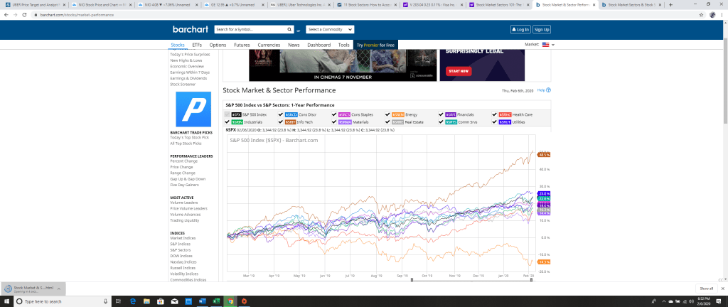 There are 11 sectors for you can trade within the stock market. All companies can be broken down by sector for example Visa stock is in the financial service sector where as a company like uber is considered a Tech stock. You can find out what sector a company is in by using yahoo finance. So far for 2020 the top sector meaning what sector produced the most return on investment is Tech. This can change at anytime but currently tech is the top sector being up 48.5%. The lowest sector for 2020 is energy being up only 14.3%. Again this can change at any time but currently this is where we stand. There are many hot stocks to keep your eye on in the tech sector. Subscribe to my blog and email me at Nova.products@yahoo.com for those hot stocks to be revealed.